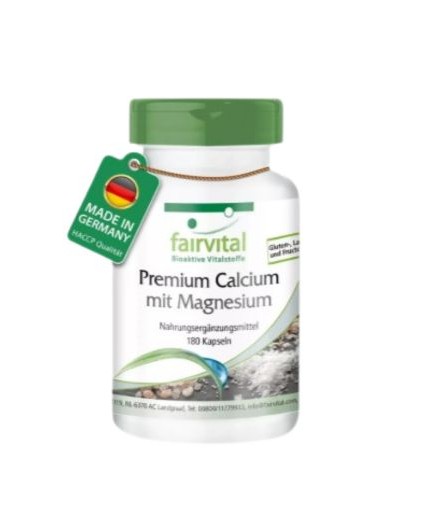 Calcio Premium Con Magnesio, de Fairvital, contiene conchas de ostra molidas como fuente natural de minerales orgánicos y oligoelementos, especialmente calcio.